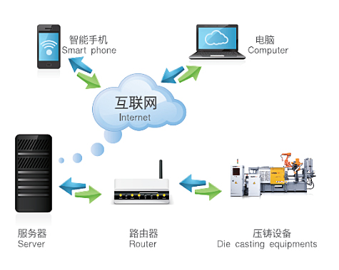 聯(lián)網(wǎng)后可隨時(shí)隨地通過(guò)智能手機(jī)或電腦掌控壓鑄機(jī)及壓鑄生產(chǎn) 過(guò)程,提升壓鑄生產(chǎn)管理水平,提高生產(chǎn)效率,降低管理成本。
